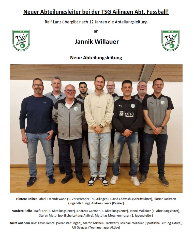 Neuer Abteilungsleiter bei der TSG Ailingen Abt. Fussball