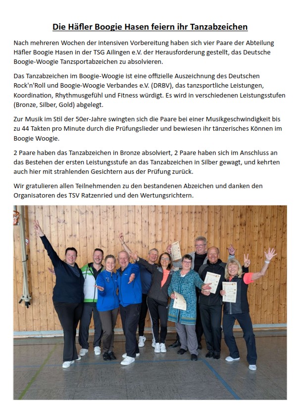Die Häfler Boogie Hasen feiern ihr Tanzabzeichen